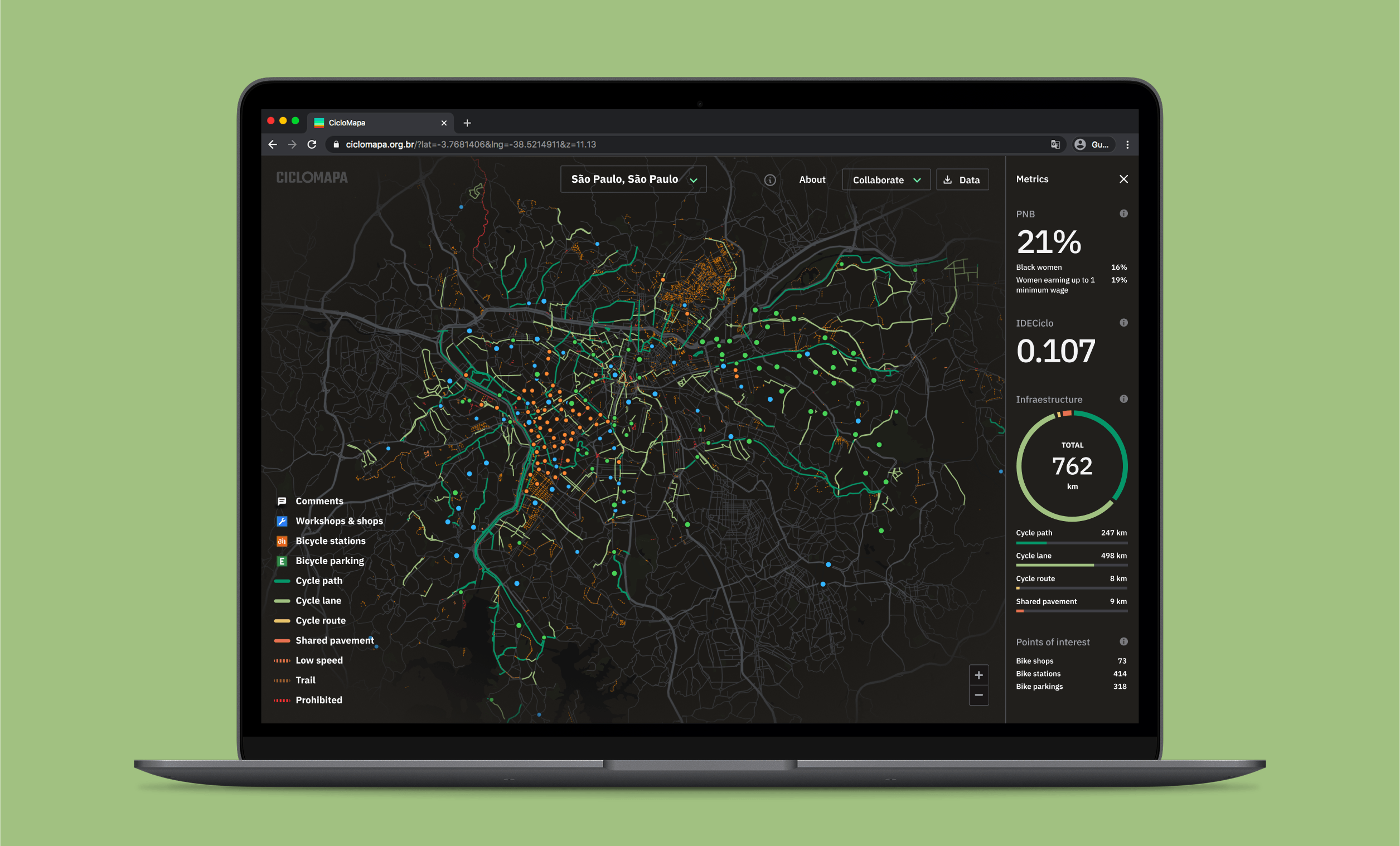 Today in Brazil, we face the immense challenge of not having data on the cycling infrastructure available in our cities, which makes it very hard to paint a clear picture of our reality and measure the opportunities and impacts to society of improving urban mobility.