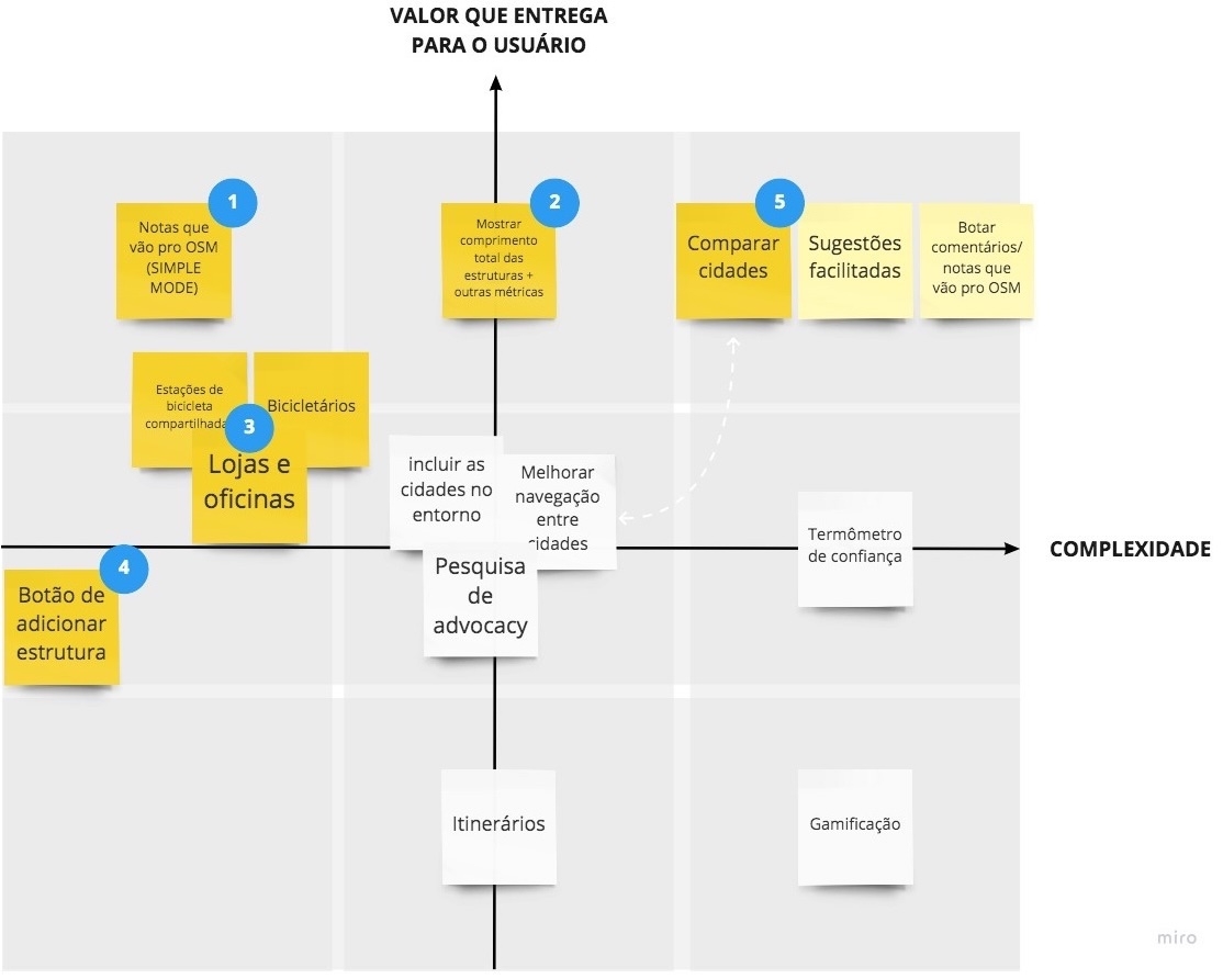 We also found out some of our “unfair” advantages: UCB and ITDP are two of the most prominent organizations of this kind that could invest in this project and would be able to mobilize the community. Also, everyone on the team already had experience with similar projects involving web apps, interactive maps, and OSM data.