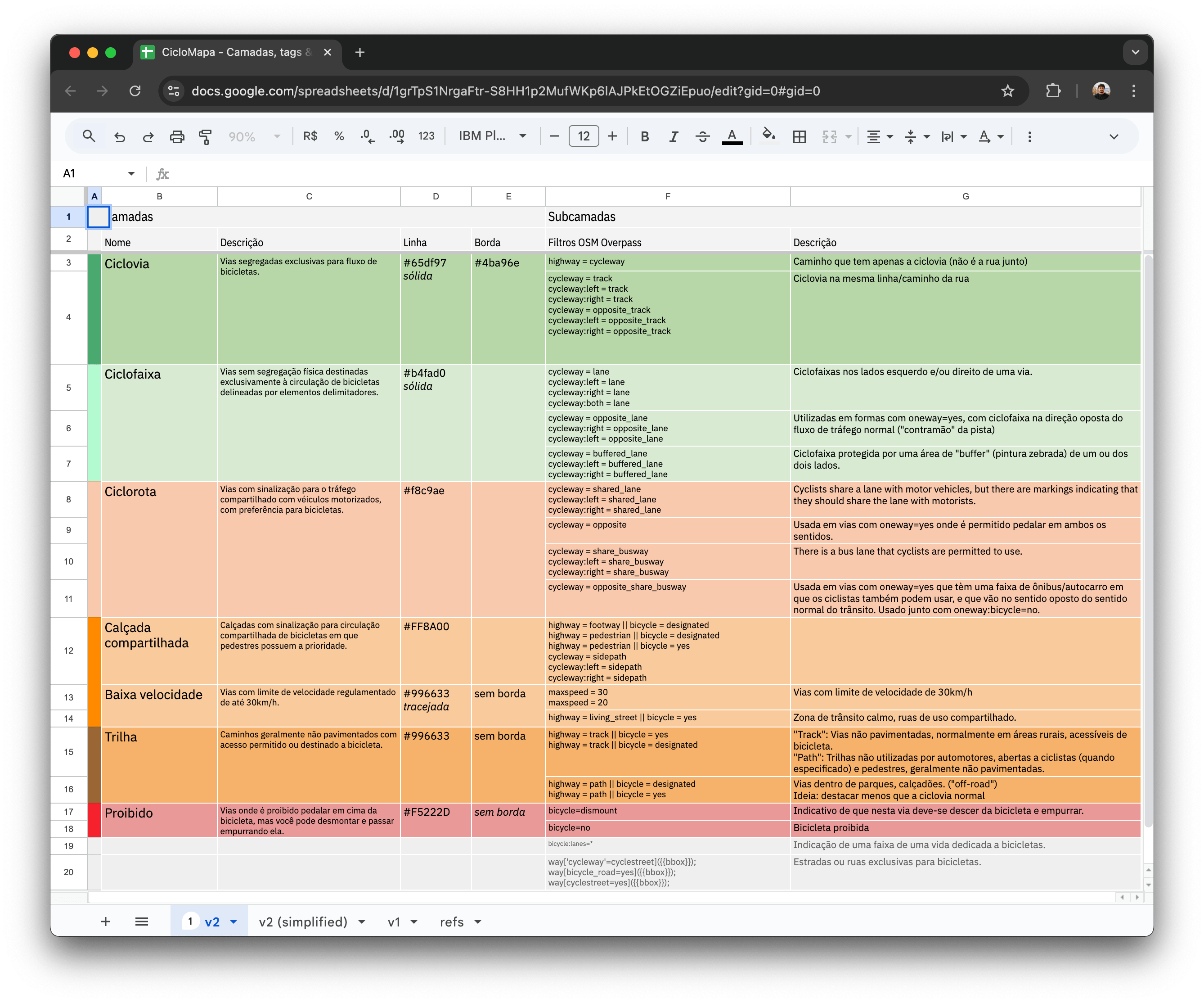 To start organizing the Information Architecture, our first step was diving into OSM documentation and manuals on cycling infrastructures. Fortunately, we had on the team a specialist on OSM who helped us abstract the technical tags into something more accessible.