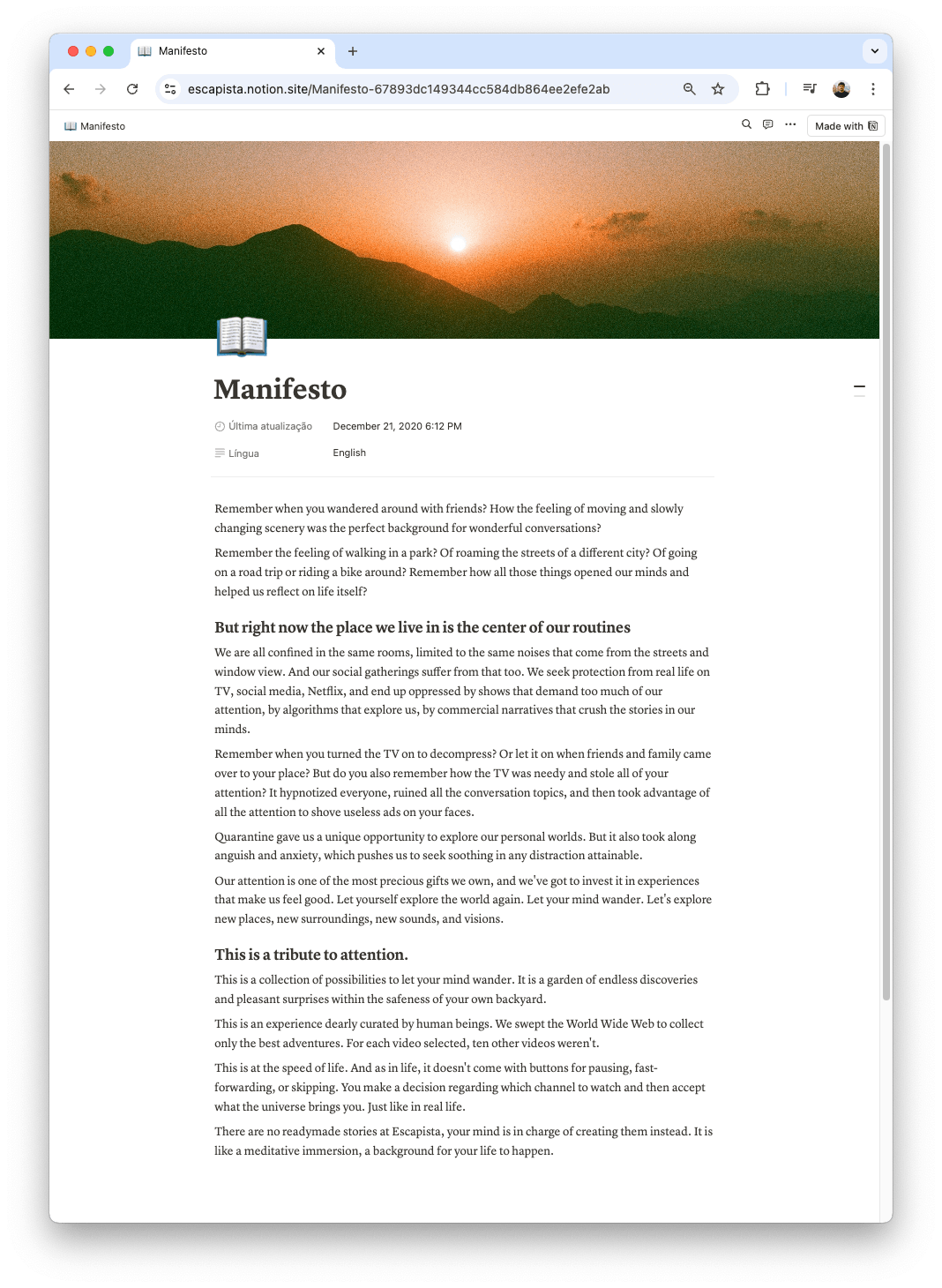 As an artistic project with a strong set of values I though it was the perfect occasion to put some writing skills to test and try to summarize everything we wanted this project to mean into a manifesto, that is accessible from the landing page.