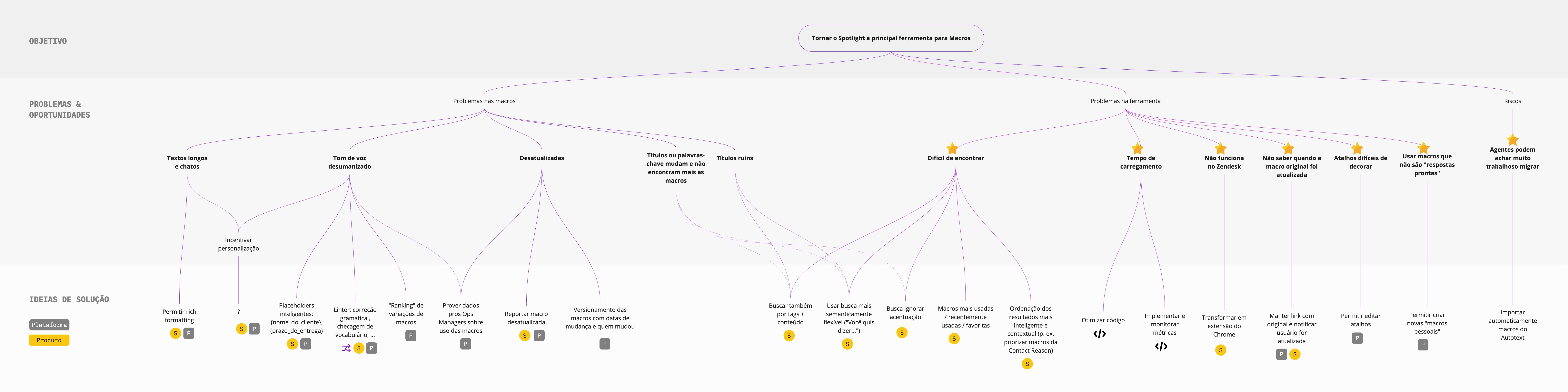 After gathering insights from sources such as surveys, in-depth interviews, and our dear Shadowing sessions, we used the Problem-Solution Tree framework to visualize the main opportunities, categorize them and relate them to possible solution ideas.